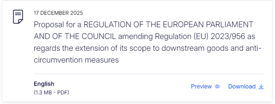 12月17日,欧盟集中公布了24份碳边境调节机制(CBAM)的配套文件(含主文件及其附件,部分文件待正式发布或处于提案阶段),涵盖隐含碳排放计算方法、默认值设定、核查原则、免费配额调整等内容。此次发布备受关注及争议的内容主要有以下几点:欧盟委员会公布了按产品类别和原产国设定的碳排放默认值,而且提出将在2026年至2028年期间,针对使用默认值计算碳排放的情况引入逐年递增的加成机制。以钢铁和铝行业相关产品为例,2026年将对默认值加征10%的加价,2027年升至20%,2028年升至30%。欧盟委员会计划从2028年1月1日起,将约180种钢铁和铝密集型下游产品纳入CBAM,这些产品涵盖机械、车辆零部件、家用电器(如洗衣机)、建筑设备等。欧盟委员会提出把消费前铝、钢废料纳入CBAM核算,并提高对相关报告的要求。当报告中数据不可靠时,要求提供额外证据,以增强相关商品可追溯性、应对虚报排放强度等问题。本轮欧盟公布的文件数量多、涵盖内容广泛、技术细节高度复杂,显著提升了合规门槛,对我国相关企业带来切实挑战。未来,欧盟CBAM法律体系还将进一步完善,如本次文件中尚未就第三国已实际承担的碳价格或相关成本在CBAM框架下如何进行抵扣或调整出台具体实施规则,仍有待在后续立法或实施文件中进一步明确。欧盟CBAM官网https://taxation-customs.ec.europa.eu/carbon-border-adjustment-mechanism/cbam-legislation-and-guidance_en